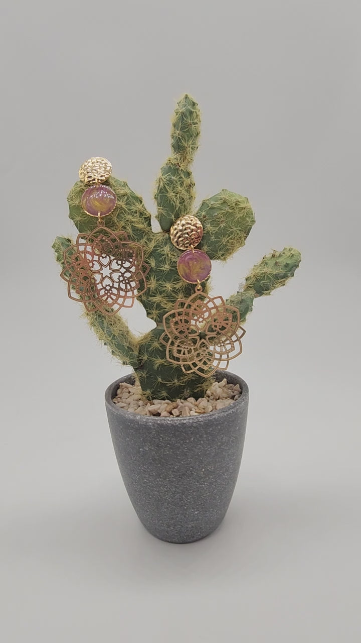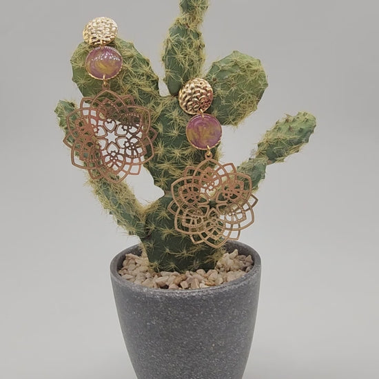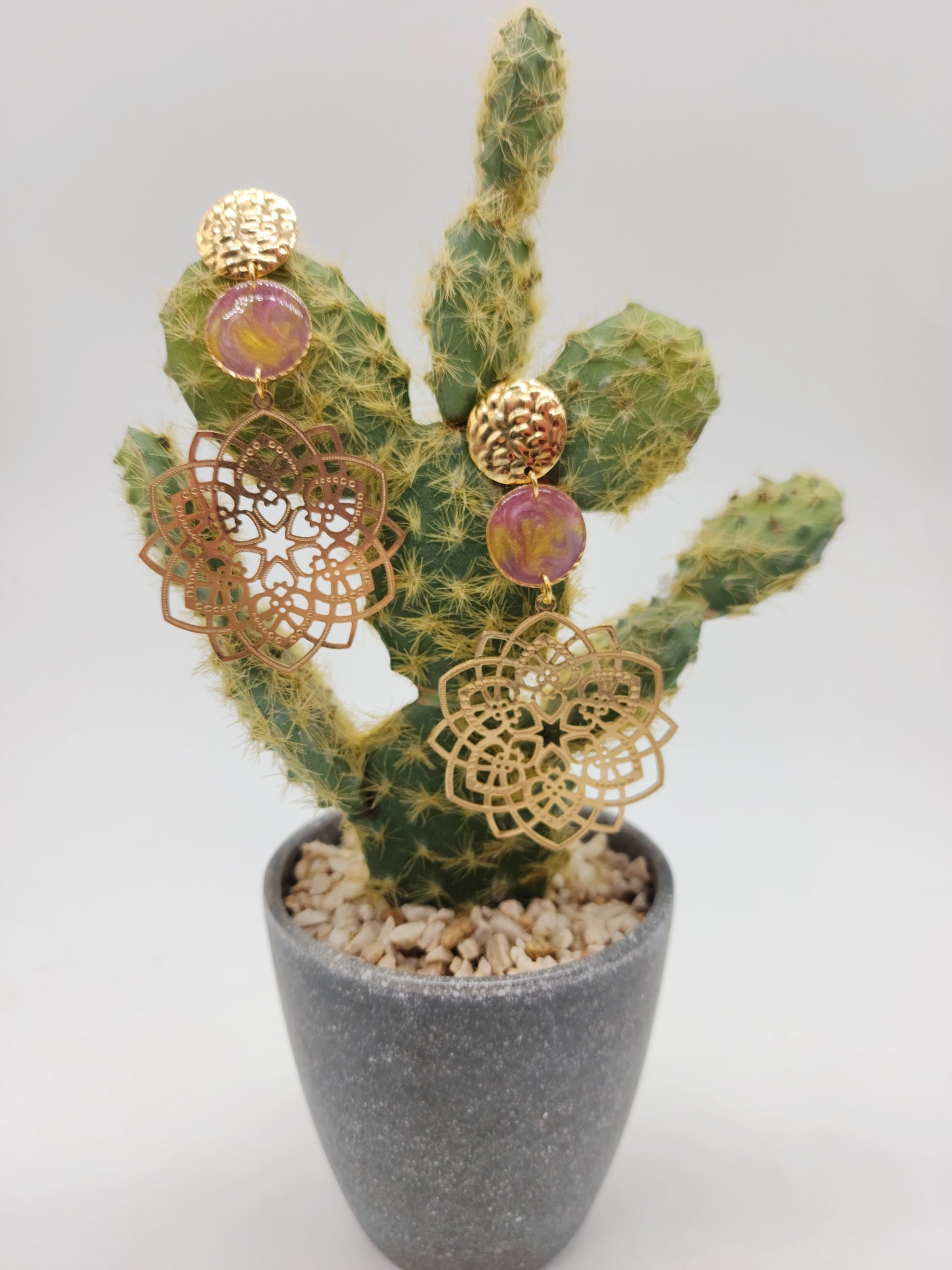 Diseñados con delicadas formas de mandala y pequeñas moneditas de resina en varios colores, cada par refleja armonía y creatividad.