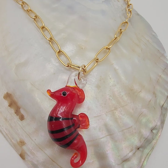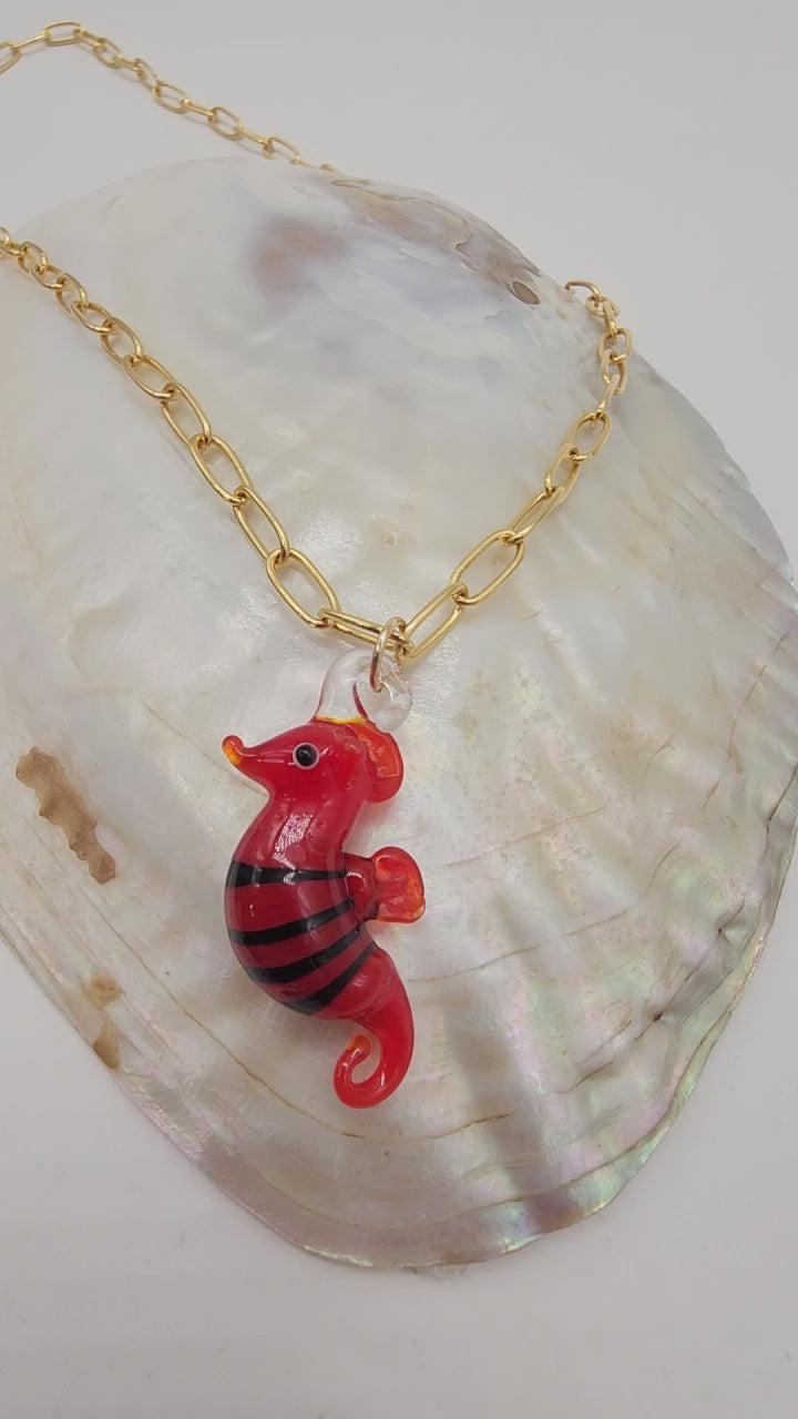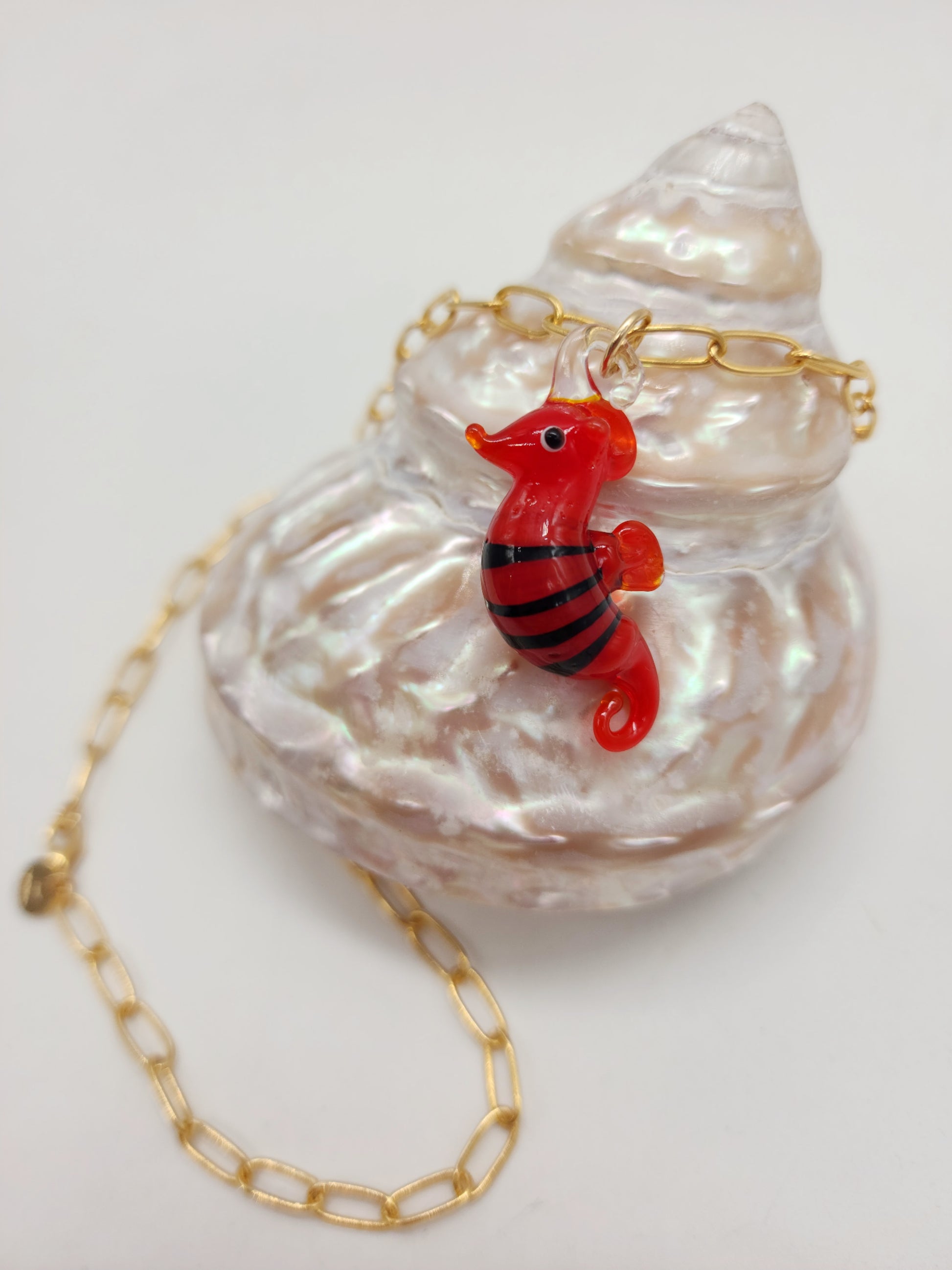 Inspirado en la magia y delicadeza del océano, este caballito rojo en vidrio soplado representa la pasión y la fuerza interior que fluyen como las mareas. Cada pieza está elaborada a mano, lo que hace que ningún caballito sea igual a otro — un símbolo único de energía y encanto marino. 🌊✨